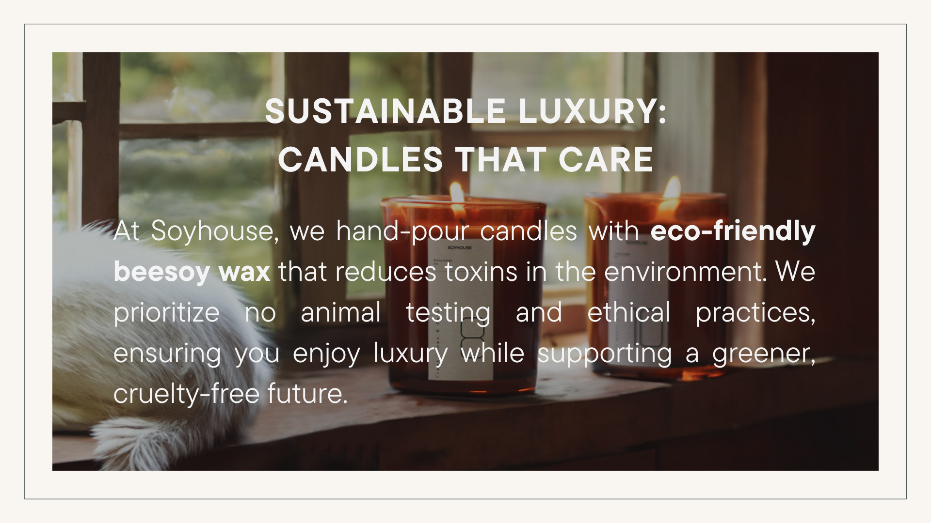 We use a premium beesoy wax blend, combining beeswax and soy wax. This special mix ensures a cleaner burn with less soot, longer-lasting candles, and natural air-purifying benefits. It’s both eco-friendly and gentle on your home environment.